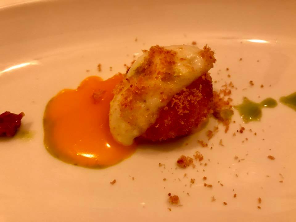 Cantina di Triunfo, Rosso d’uovo fritto con spuma di parmigiano tiepida