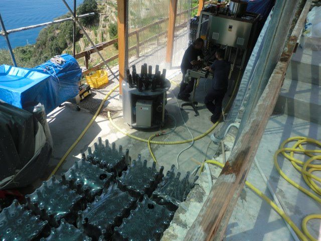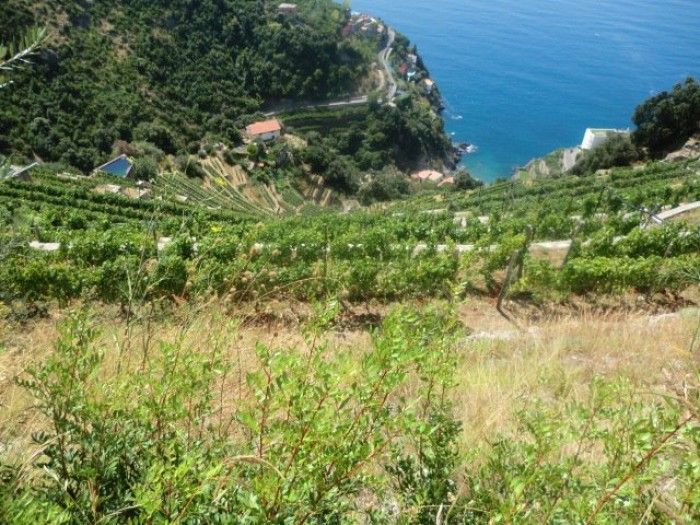 L’azienda è una sorta di tesi di laurea per studenti di agraria: muretti lavorati a mano, ripresi o costruiti, sistema idrico di vasche, ottimizzazione dell’uso dei preparati biologici, un labirinto di terrazzi che scavalla la collina e da cui si gode ogni volta uno scenario diverso: mai dritto, in su o in giu.