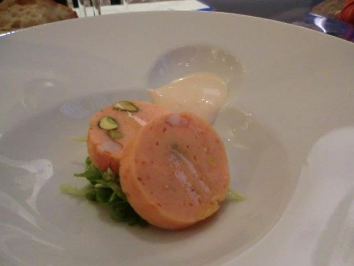 C’è poi il divertimento puro, aprescindere dal sapore, come questa mortadella di gamberi che cita il cocktail di gamberi con la salsa rosa del papà Franchino che faceva impazzire il jet set internazionale.