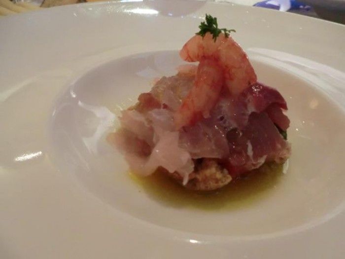 Ma veniamo a noi: già il raviolo fritto con ricotta e pomodoro indica la linea di questa stagione. Di fronte alla crisi la Caravella si arrocca con i suoi grandi piatti della tradizione amalfitano-partenopea nei quali si trova sapore, sapore,e ancora sapore. Pulizia, grandi prodotti e tecniche molto studiate.