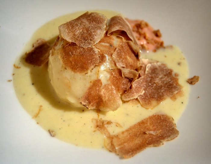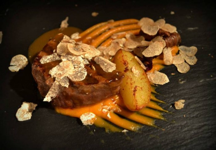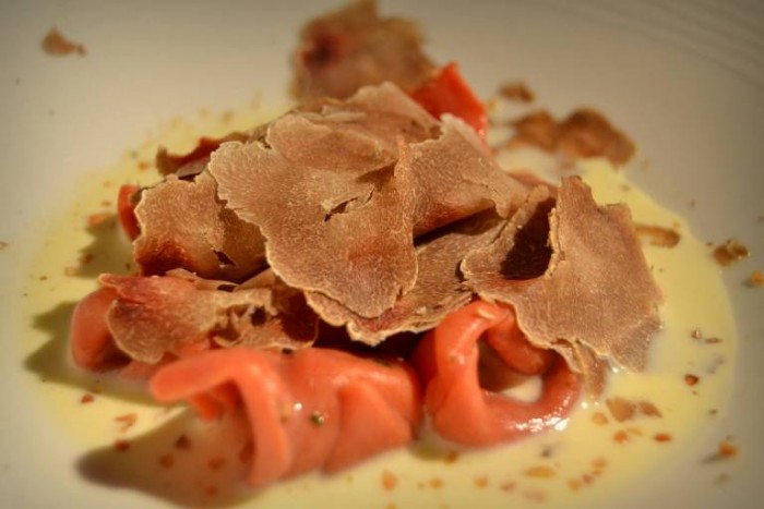 I toni caldi dell’architettura vagamente orientale dell’ex Chiesa di S. Antuono, incorniciano una serata piacevolissima, dove il fulcro attorno al quale tutto gira, non è più solo sua maestà il tartufo, ma un solido progetto di ristorazione.