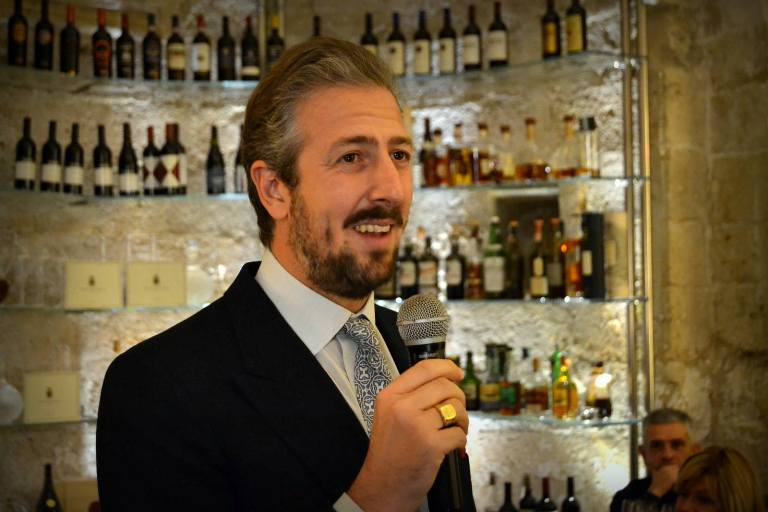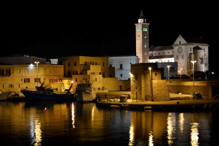 Le piccole onde che si infrangono nei toni sordi ed ovattati ai piedi della grande terrazza sul mare, quella del Ristorante “Le Lampare Al Fortino” di Trani, dalla quale si ammira il miglior panorama possibile sul porto della cittadina pugliese, sprigionano nell’aria i profumi iodati e salmastri tipici dei luoghi di mare. Nulla, in una serata come questa, avvolta già dalla precoce notte autunnale, lascerebbe pensare che all’interno della meravigliosa sala ristorante ricavata dalle architetture romaniche della chiesa duecentesca di Sant’Antuono, si celebra invece, una serata tutta dedicata al tartufo bianco e ai grandi vini di Tenuta San Leonardo.