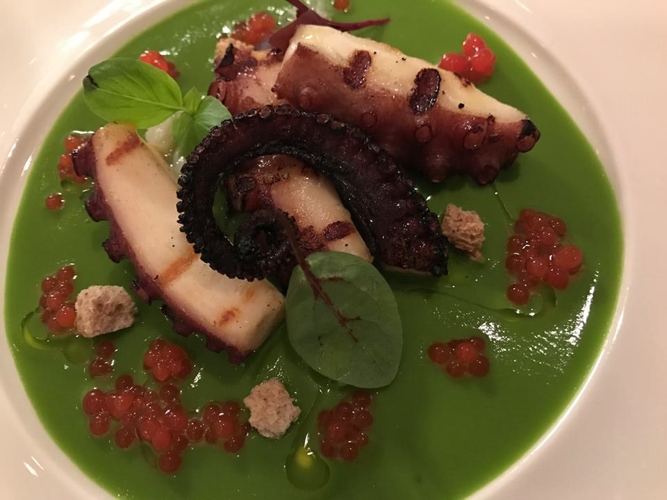 Andrea Migliaccio, Polpo grigliato alla colatura di alici con passato di scarola, cipollotti e friselle al finocchietto