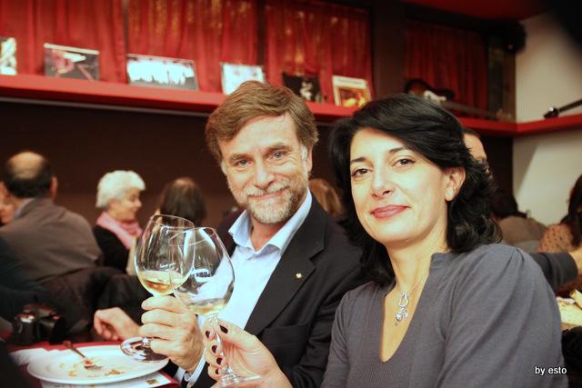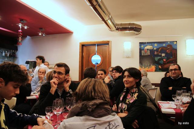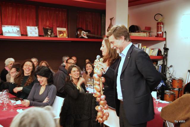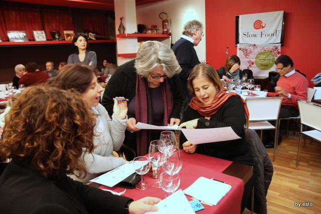 Queste cene sono momenti di allegria conviviale, di amicizia e di piacere – e questo è nel nostro DNA. Ma sono pure occasioni di conoscenza. Un contadino in questa serata ha raccontato di come, grazie all’aiuto di Slow Food, si stanno riconvertendo campi recentemente destinati alla coltivazione di tabacco (molto poco remunerativa) in coltivazioni dell’antica varietà di cipolla di Montoro, ormai quasi estinta. Di quanto sia stato importante riappropriarsi dei propri semi e delle proprie antiche tecniche di coltivazione. Dell’aiuto che la nostra associazione dà loro per aiutarli a sviluppare forme di coltivazione e commercializzazione sostenibili. Di quanto tutto ciò abbia ridato a giovani nuova speranza nel futuro e nuove prospettive di lavoro. Una storia che ha colpito molto i non soci presenti, che hanno capito che dietro il gioco c’è un lavoro importante, che il nostro approccio al cibo lega i problemi dell’alimentazione a quelli dell’ambiente e della legalità… e in 5 si sono associati. E tutti hanno capito che pure acquistare una cipolla può trasformarsi in un atto consapevole e attento; così, tra l’altro, è pure più divertente. E questo significa trasformare consumatori in coproduttori. Sono sempre così le cene di Slow Food – vi ricordo che con tre cene abbiamo finanziato tre orti in Africa, che questa estate abbiamo fatto conoscere la papaccella napoletana e il fagiolo cannellino di Acerra ad oltre 10.000 persone… le cene e cenette di Slow Food sono questo, non perdetele!