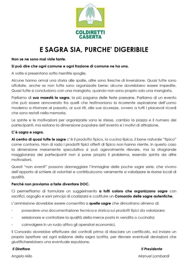 Manuel Lombardi, presidente della Coldireti di Caserta ga scritto un vero e proprio manifesto che ci trova assolutamente d’accordo e che rilanciamo.
