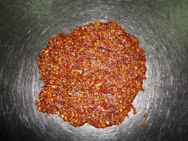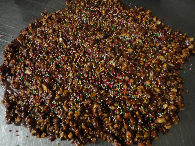 Prendete un coltello abbastanza lungo, ungetelo di burro e livellate tutto il composto ad un’altezza di circa 1,5 o 2 centimetri. Quindi lasciate raffreddare. Quando la croccante sarà completamente raffreddata , tagliatela in tanti quadretti uguali e servite. La potrete conservare a lungo, almeno per tutta la durata delle feste natalizie.
