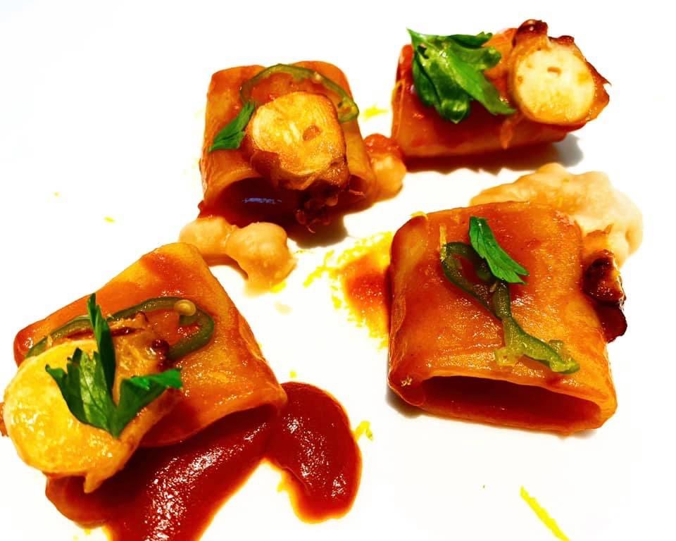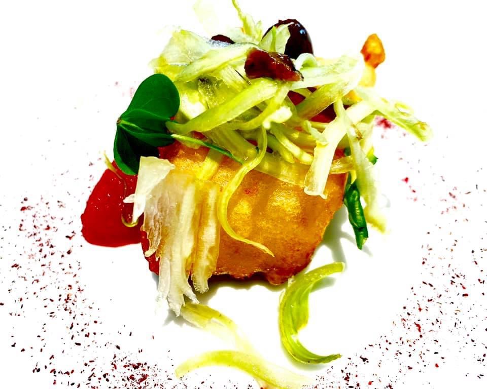 Dalla Seppia arrosto con broccoli e rafano, al Gambero Rosso con porcini, maggiorana e nocciole, dalla Pasta e Polpo alla Luciana con fagioli e Chorizo fino al Baccalà fritto con mela, puntarelle e Karkadè, Luigi Salomone è riuscito a tirar fuori da se stesso un menù sì compiutamente territoriale nelle linee guida, ma che non rinuncia ad una chiara leggibilità identitaria, fatta di varie declinazioni del medesimo ingrediente nel piatto, diverse tecniche di cottura che coesistono simultaneamente e di un grande rispetto per la materia prima e per le paste secche, vero caposaldo e pietra d’angolo di ogni buon campano che si rispetti.