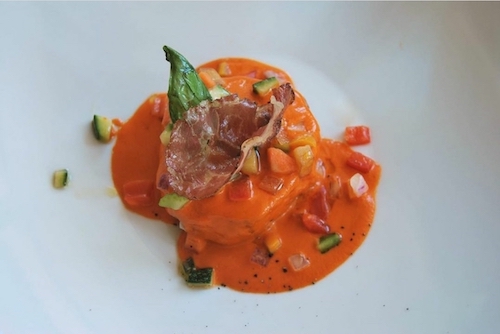 Tenuta Chianchito – Filetto di maiale cotto a 63 gradi, mousse di datterino, verdurine croccanti e bacon