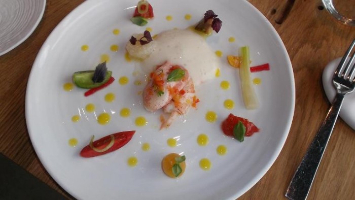 Alice Ristorante, astice intero alla catalana con variazione di pomodori confit, salsa di peperoni e spuma di acqua di pomodoro