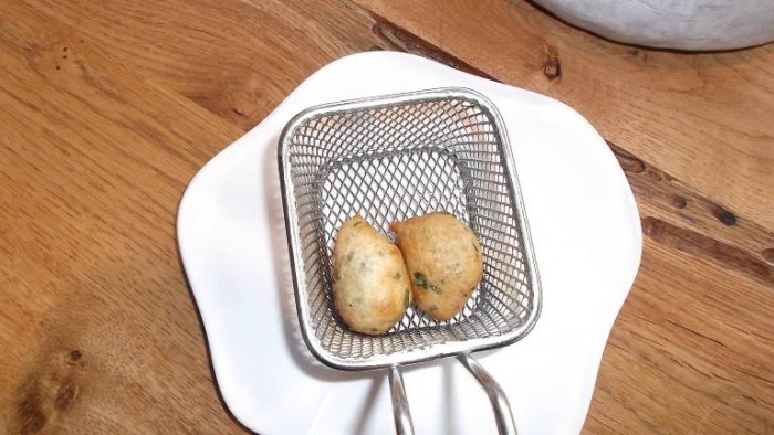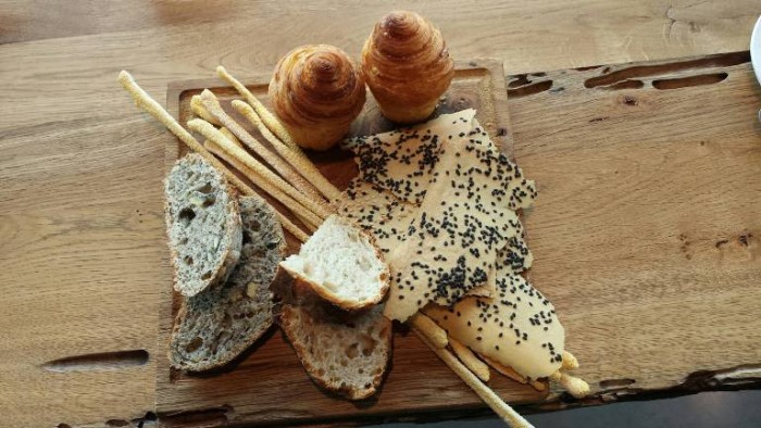 Alice Ristorante, pane carasau con baccakà mantecato e pacchero fritto con mousse di parmigiano ed erba cipollina