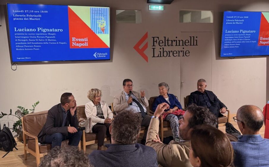 La presentazione, alla Feltrinelli di Piazza dei Martiri a Napoli, ha riunito voci autorevoli: l’autore con la Principessa Pignatelli, Santa Di Salvo (giornalista e presidente dell’Accademia della Cucina di Napoli), Alfonso Pecoraro Scanio (presidente Fondazione UniVerde) e Antonio Puzzi alla moderazione. In apertura, Alberto Saibene per Hoepli ha sottolineato l’importanza di questa ristampa: “La cucina, il cibo e il vino fanno conoscere Napoli nel mondo.”