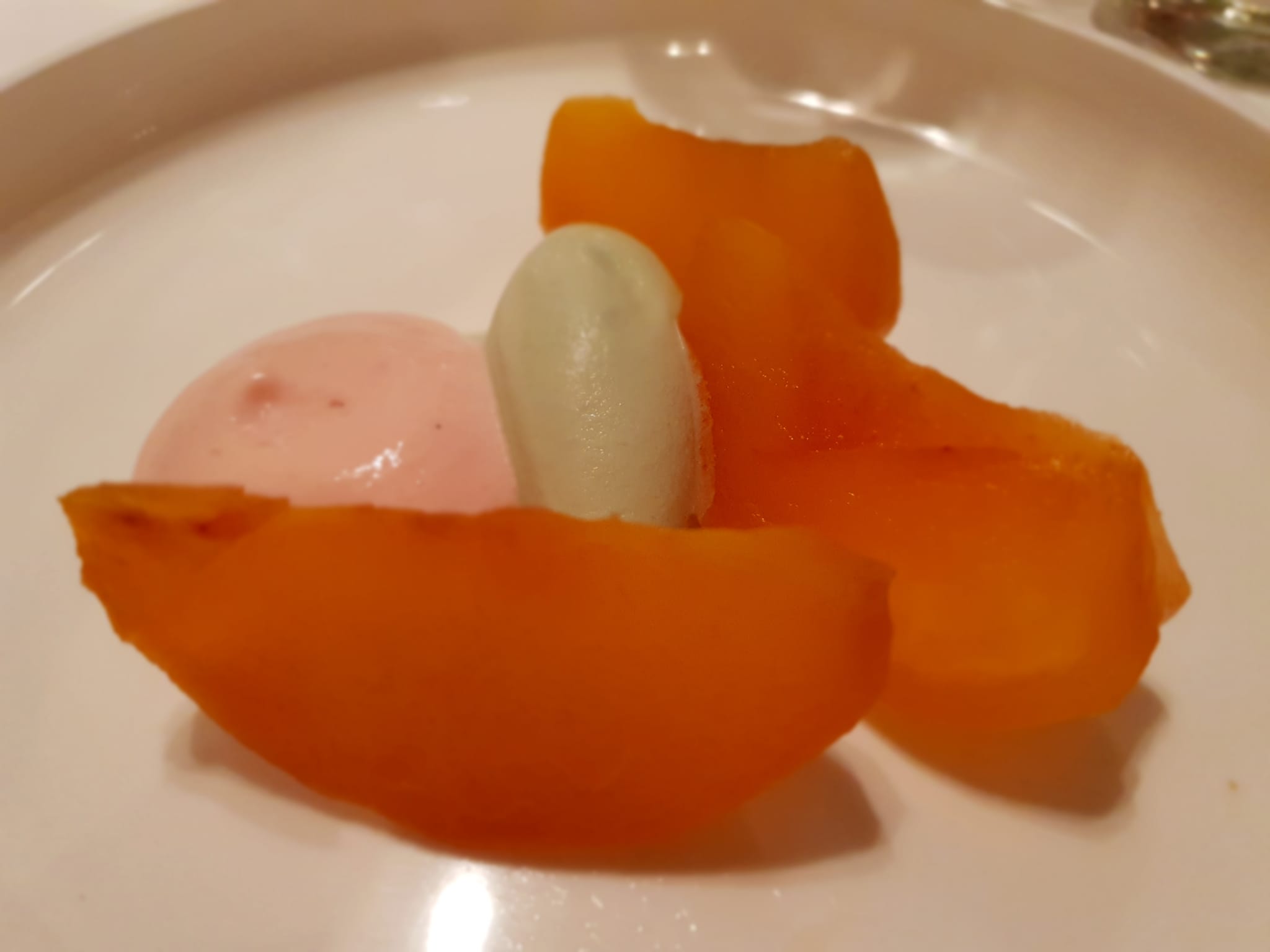 - Pesca, timo limone, fragola e gelato ai semi di zucca. Josean Alija