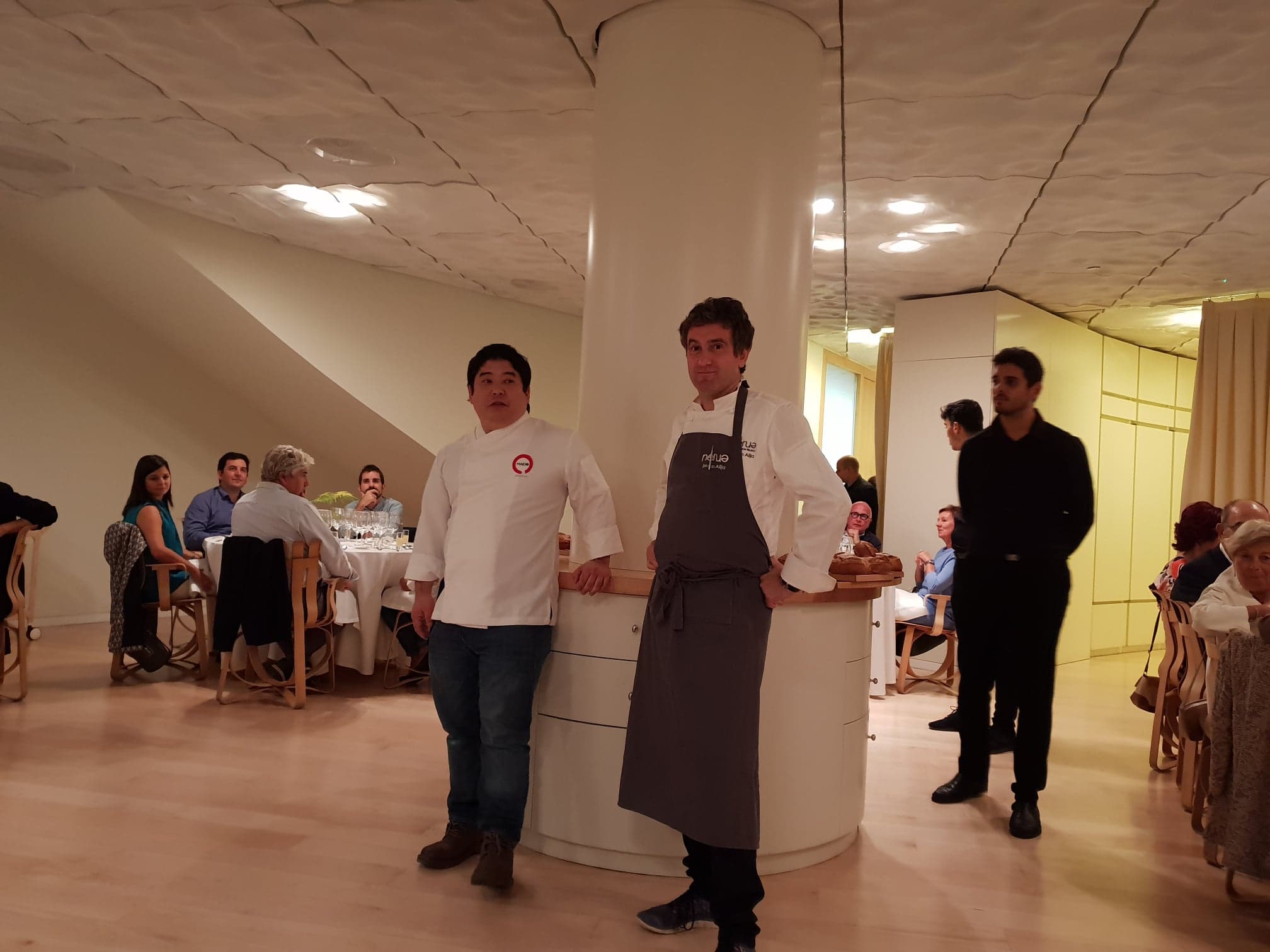 In questo caso il nuovo è la cucina NIkkei, divenuta famosa a livello mondiale con “Pakta“, il celeberrimo locale di Ferran e Albert Adrià, letteralmente innamorati di questa cucina fusion. Nata in Peru circa 60 anni fa, la cucina Nikkei è un incontro tra la cultura gastronomica giapponese e quella peruviana, un mix di tradizione e creatività. Il “Sommo Sacerdote” di questa cucina è senza dubbio Mitsuharu Tsumura detto “Micha”, chef/patron del ristorante Maido in Perù, autore del primo libro sull’argomento: “Nikkei Es Peru”. L’occasione, per me, di provare questo curioso incrocio tra la cucina giapponese e quella peruviana, è una cena all’interno del Guggenheim Museum di Bilbao nel ristorante Nerua, per un quattro mani con Josean Alija.