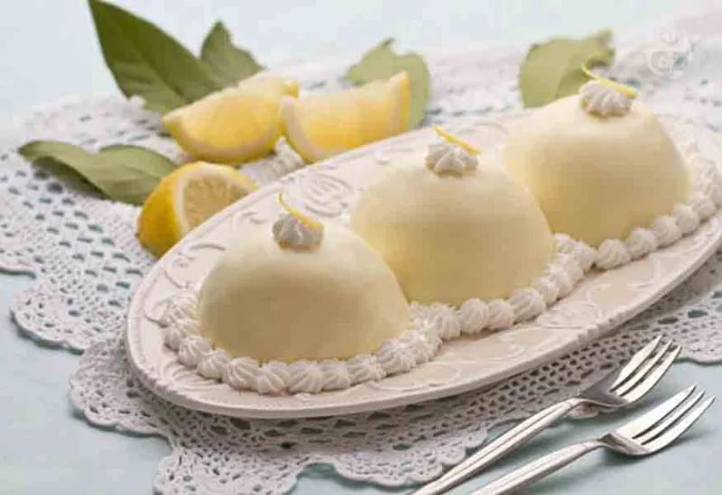 – Con questa salsa si ricoprono le delizie decorandole a piacere con ciuffi della panna montata avanzata e bucce di limone sciroppate.