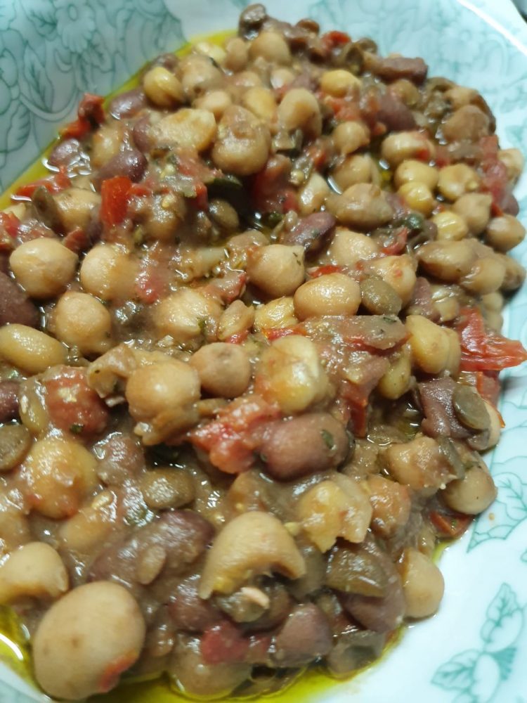 Ed eccoci ai legumi, si comincia con la zuppa di legumi dei presidi Slow Food, e qui si mischia l’Italia e i suoi prodotti, il fagiolo rosso di Lucca porta un pezzetto di Toscana su questa tavola.