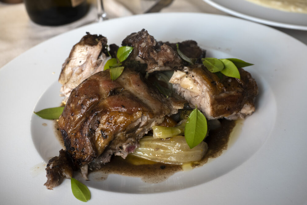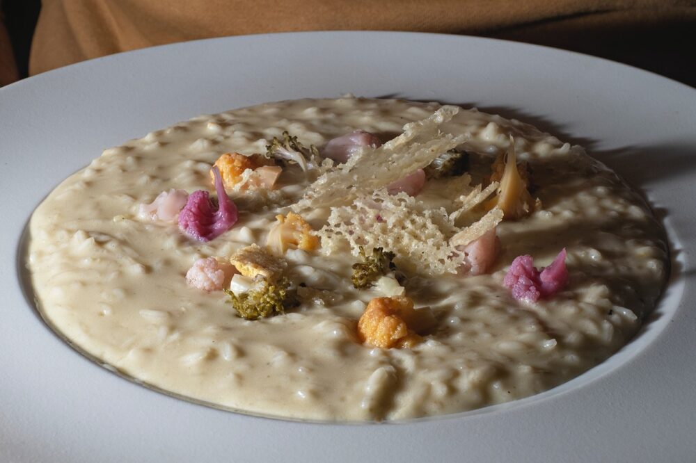 La mano dello chef, generosa e raffinata, si saggia sui primi: dal risotto cacio pepe e baccalà, delicatissimo, ai Pici di cinghiale e mandorle.