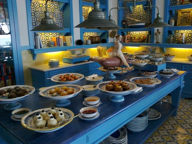 Qui, ovviamente, il limone non manca mai, è il vero simbolo dell’isola e lo si ritrova in molte preparazioni e ricette dolci. Tra i ristoranti di Capri c’è chi, proprio sotto la storica limonaia ha creato una dei più suggestivi dehors a pochi metri dal mare: da Paolino (www.paolinocapri.com). Sotto gli alberi di limoni, accanto a fusti e tronchi intrecciati tra loro per sempre, il figlio di Paolino che oggi gestisce l’attività tra i tavoli illuminati da lampade in maiolica e candele artigianali, ha creato quello che è uno dei buffet dolci più conosciuti dell’isola. Al centro tavola un enorme recipiente di panna fresca per accompagnare la frutta di stagione. Tutt’intorno pasticcini secchi al limone e alle mandorle, capresi, babà con e senza crema, delizie al limone, profiteroles ricoperti di cacao, crostatine di frutta, dolci al cucchiaio.