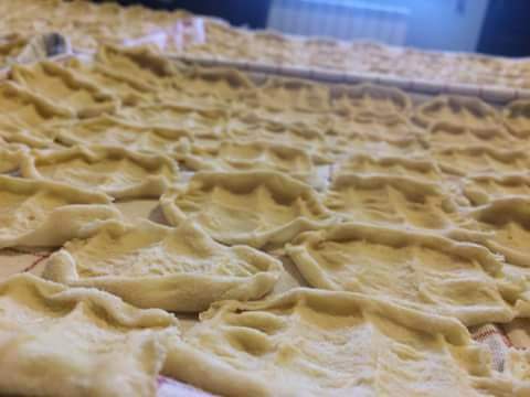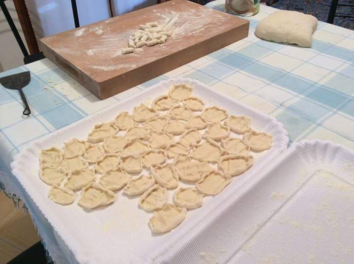 La base è sempre di pasta frolla mentre il ripieno può essere bianco, in sostanza riso, albume montato, cacio ricotta di capra, zucchero, scorza di limone ed un goccio d’anice oppure giallo, in questo caso gli ingredienti rimangono gli stessi tranne l’uovo che viene usato intero. C’è poi una versione più moderna arricchita da gocce di cioccolato fondente. Tutte vengono decorate, prima di essere infornate, da foglie di ulivo benedette, conservate dall’anno precedente, in segno di benedizione per il nuovo raccolto. Spostandoci invece nell’alto Cilento, a Montano Antilia, Lucia Giannattasio dell’agriturismo Ai Monaci, un’altra custode delle tradizioni cilentane più autentiche, ci racconta di un antichissimo dolce, una sorta di raviolo farcito con ricotta di capra, scorza di limone, cannella e miele che faceva da apripista ai dolci di Pasqua. In omaggio alla sua mamma questo dolce viene ancora realizzato e proposto agli ospiti nella settimana santa.