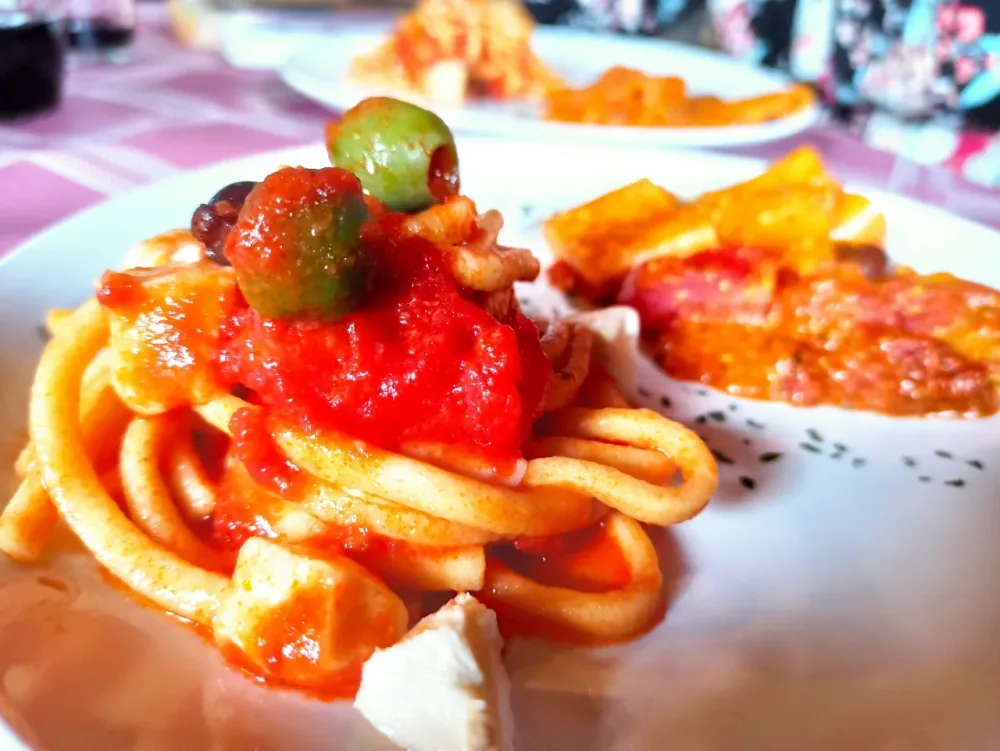 La Fattoria del Melopiano – Lo spaghettone artigianale con riduzione all’Aglianico, Crema di Pecorino del Matese, Cipolla di Alife e Lardo