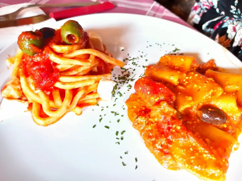 Per i primi ci si aspetterebbe qualche preparazione tradizionale e semplice ma la banalità viene messa da parte e si viene sorpresi con dei piatti che esaltano distintamente gli ingredienti locali a modo proprio: -Spaghettone artigianale con riduzione del proprio Aglianico, crema di Pecorino del Matese, cipolla di Alife e Lardo; -Cavatelli giganti artigianali con funghi Porcini del Matese, pomodorini gialli e ceci.