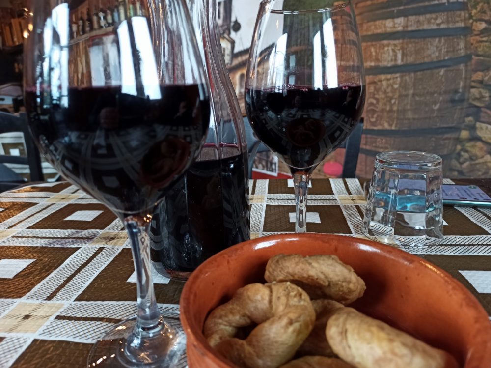 Ha ricavato una piccola sala con circa 30 posti a sedere nell’antica stalla della fattoria, riscaldata con una stufetta a legna e con delle “vrasere” (bracieri) alimentate con i carboni del forno utilizzato per il panificio aziendale che sforna Pane e Biscotti di San Michele, un “Prodotto Agroalimentare Tradizionale” che viene riproposto anche in una versione a tarallo più piccolo per farlo assaggiare come pietanza di benvenuto insieme all’ottimo vino della casa senza solfiti, ottenuto da uve Aglianico e Merlot.