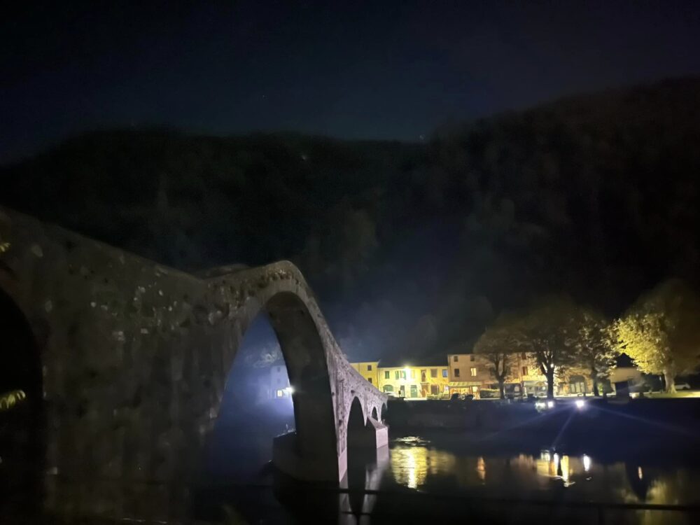 La prima sosta a Borgo a Mozzano per il Ponte della Maddalena, suggestivo, soprattutto di notte o al mattino avvolto dalla nebbia.