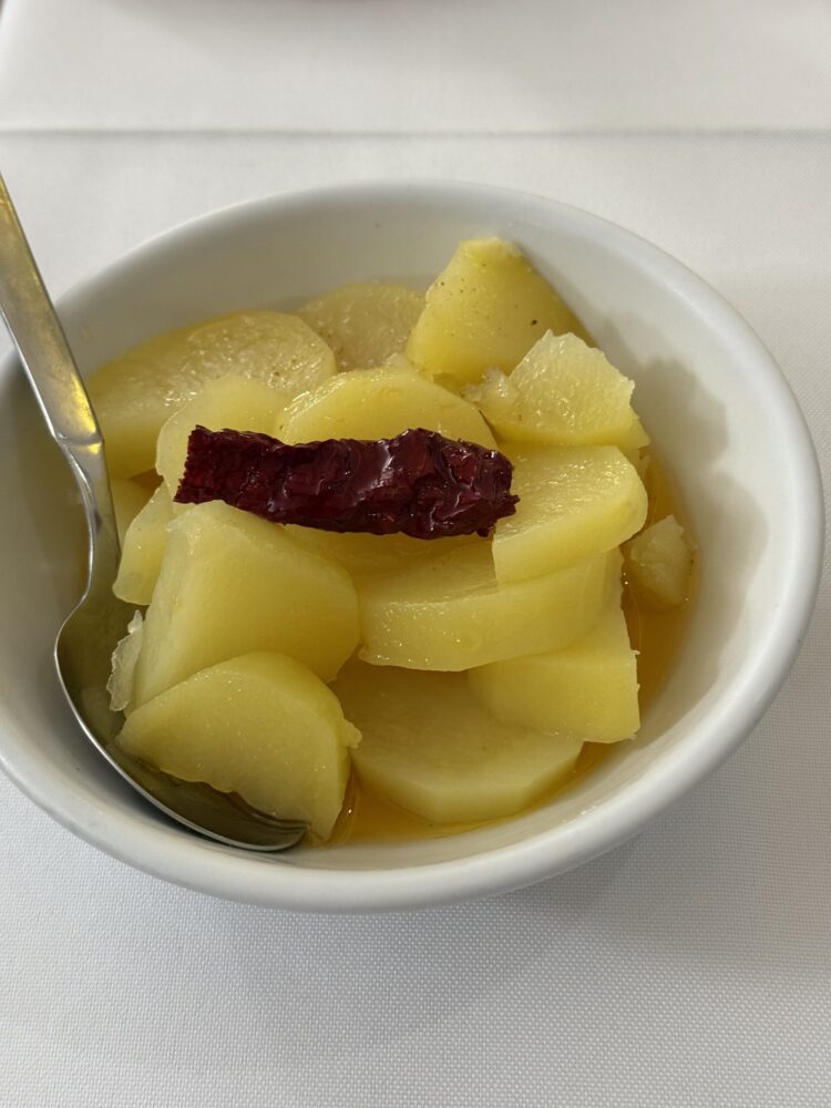 Ad accoglierci, Filomena, la proprietaria, con il suo sorriso aperto e quella gentilezza naturale che fa subito sentire a casa. Il servizio è attento, premuroso, mai invadente. C’è passione vera in ogni dettaglio, dalla mise en place alla selezione dei vini, che include anche uno sfuso, l’Aglianico di Barile, senza etichetta, ma con un’anima decisa e contadina. Sorprendentemente buono.