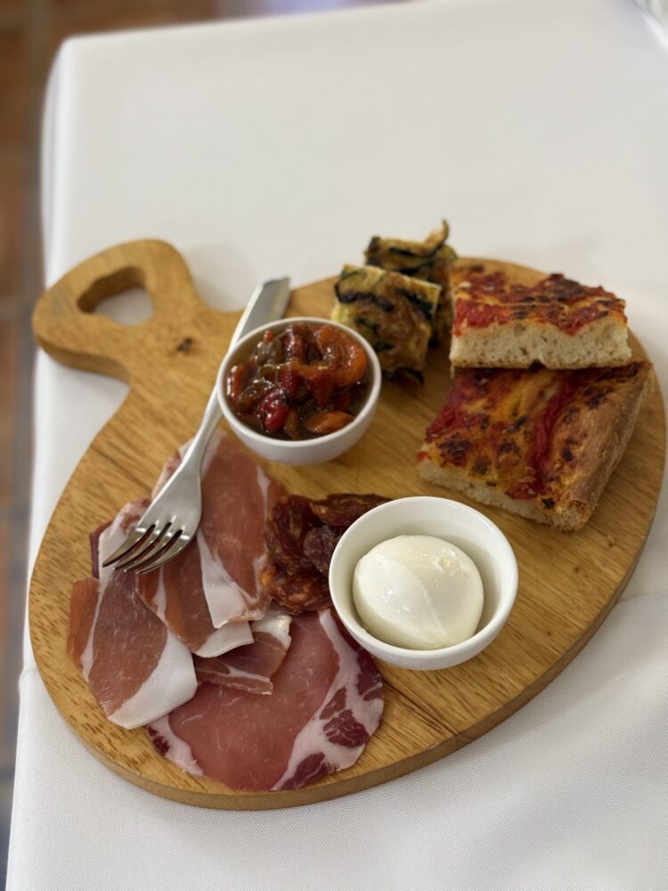Per il pranzo, ho scelto un locale che già dal nome prometteva atmosfera e identità: “La Gatta Cenerentola”, incastonato in una grotta del centro storico. Il ristorante è gestito con grande passione da una coppia di Calitri, affiancata dalla loro giovane nipote. L’ambiente è caldo, intimo, autentico: pareti in pietra, tocchi di bordeaux, luci morbide. Un luogo che riesce a essere elegante e genuino allo stesso tempo, senza forzature.