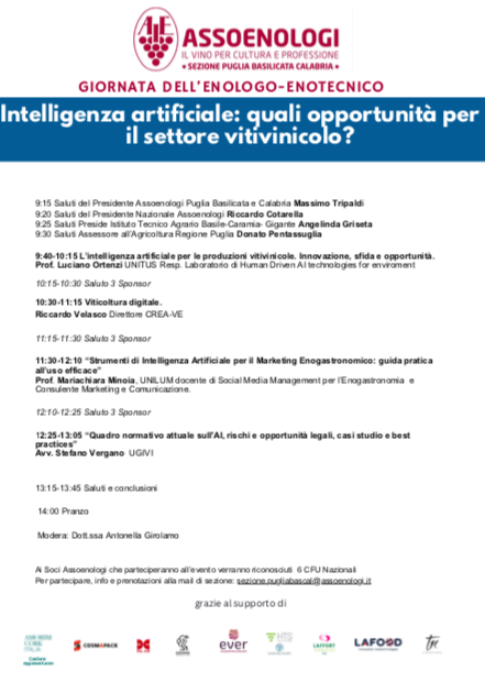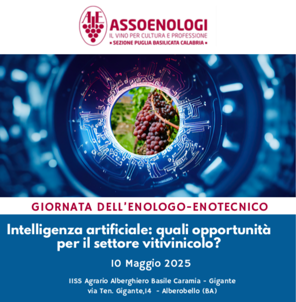 La Giornata dell’Enologo | Intelligenza artificiale: quali opportunità per il settore vitivinicolo? 10 maggio 2025 – Istituto Tecnico Agrario Basile-Caramia Gigante”, Alberobello (BA)