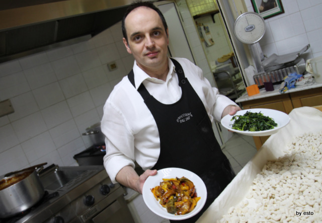 In questi tempi resi moderni da ultrasuoni e induzioni qui c’è ancora la fornacella impiantata nella cucina economica rivestita di piastrelle. Carboni ardenti e tiano d’alluminio. Cocchiarella in legno e sapienza antica. Senza fretta, senza ansia, senza tedio. Mai.