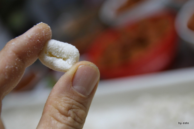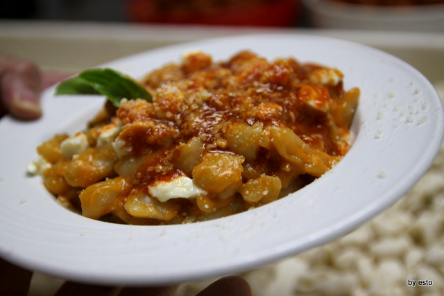 Prima, e non dopo, è d’obbligo un assaggio, completo, della carne che ha “pippiato” nel sugo, con cui verranno conditi gli gnocchi e che io avrei “tirato” ancora un’oretta.