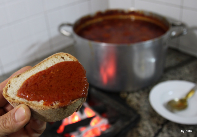 Rosso cupo, quasi bruno, odoroso di caramello e basilico, il segreto sapete qual è? Il fuoco.
