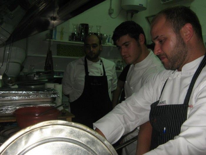 – Primo: paccheri farciti al baccalà su crema di patate e sedano di Eduardo con Natì coda di volpe 2010
