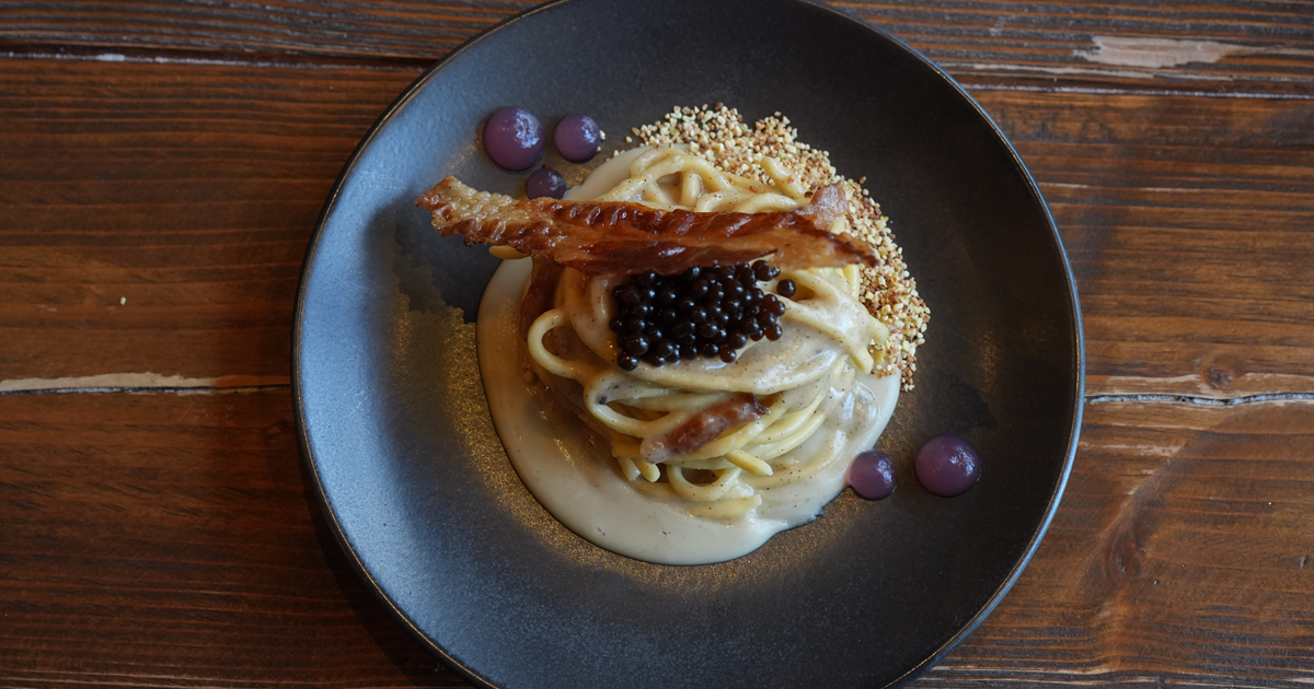Flavio Consorti del Ristorante Fusio a Zurigo (Svizzera) partecipa a La cucina italiana del futuro in Svizzera 2025, iniziativa siglata 50 Top Italy in collaborazione con Maistà, con La Gricia Ribelle.