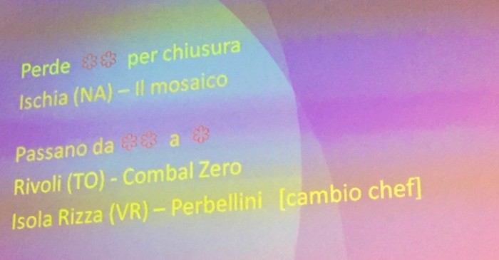 Rimane per me un mistero come la Guida Michelin riesca, ogni anno, a far parlare di sé con un’enfasi mediatica così spaventosa. L’edizione 2016 è stata oggetto di ogni sorta di commento, nessuno si è sottratto al compito (neppure il sottoscritto). Dopo aver letto decine di resoconti, più o meno convincenti, alcune dovute considerazioni: la levata di scudi contro il declassamento di Davide Scabin è stata impressionante, cominciata con quel “Nooo” corale che i molti giornalisti (uniti ai numerosi affini della comunicazione gastronomica) hanno intonato all’unisono la mattina della presentazione. E’ apparsa una slide, affilata come una ghigliottina, e zac: una stella in meno al povero Scabin. A parte la discutibile scelta dei colori di quella fatidica schermata (e di tutte quelle proiettate), con quel giallo fastidioso su sfondo violaceo che confondeva la vista e, nella concitazione, faceva sparire il simbolo stellato, aizzare l’ira funesta del Pelide Achille (cioè tutto il mondo della critica gastronomica nostrana) è stato il primo colpo da maestro della Rossa per eccellenza. In un’edizione della Guida priva di sussulti, senza terze stelle assegnate, ci voleva la notizia e la malinconica sentenza sul Combal.0 è stata la “notizia perfetta”. Bravissimi.