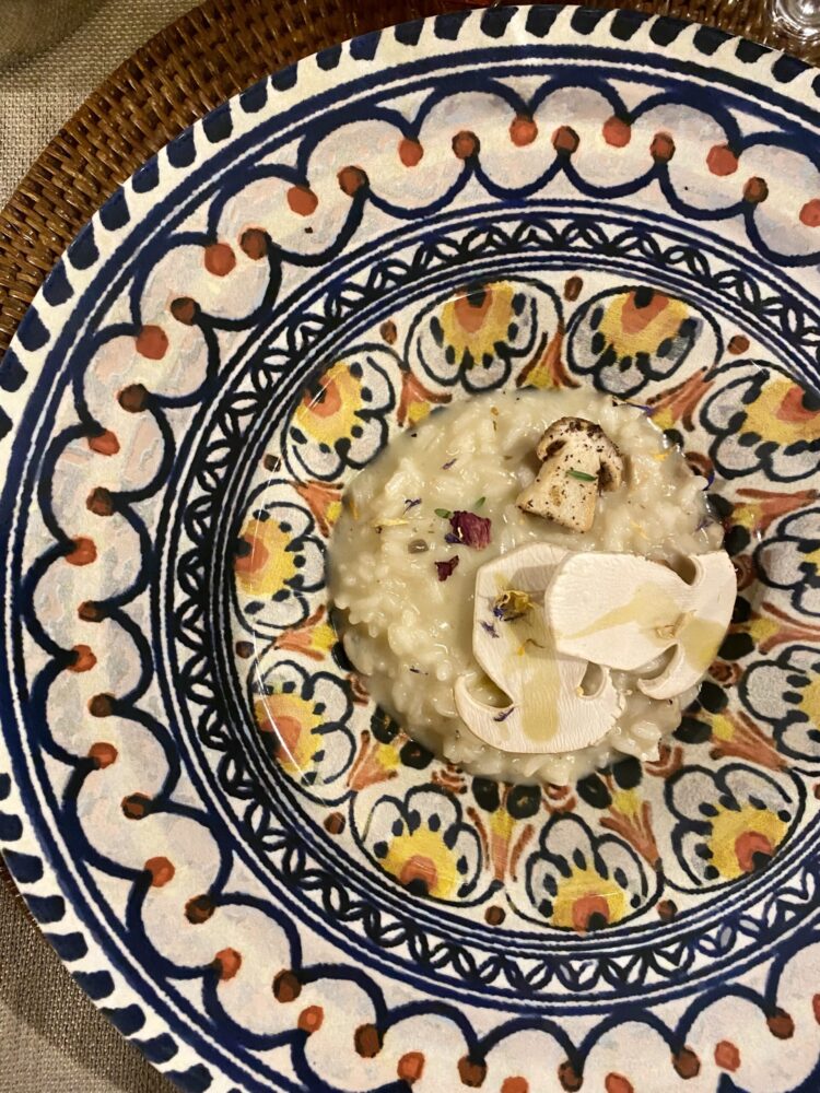 Profumi e sapori che mostrano la passione per la cultura gastronomica di Daniele Luongo, come si evince anche dal Manzo marinato all’olio e al mosto cotto, dall’insalata di funghi porcini, spuma di topinambur e tartufo. Poi Risotto ai porcini; Guancia di vitello, falanghina e sedano rapa.