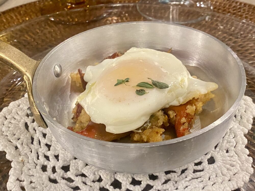L’uovo fritto con i peperoni cornetti alla mollica di pane, origano e tartufo -Locanda della Luna