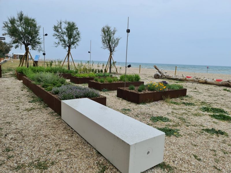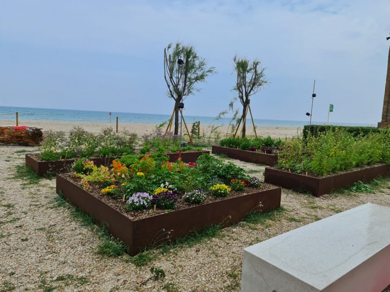 L’altra grande novità è l’orto sul mare. Uno spazio deve di fronte al ristorante dove coltivare tutte le erbe che poi verranno utilizzate in cucina. Un modo anche per riqualificare un piccolo pezzo del lungomare di Senigallia, perché quando c’è il bello è anche più buono.