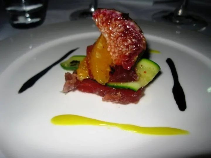 Millefoglie di tonno di Carloforte cotto al sale verde con carpaccio di zucchine e fichi 1/8/2011 Torna a: La Millefoglie di tonno di Carloforte cotto al sale verde con carpaccio di zucchine e fichi. Chef Angelo D’Amico Le Macine – UNA Hotels Benevento Millefoglie di tonno di Carloforte cotto al sale verde con carpaccio di zucchine e fichi