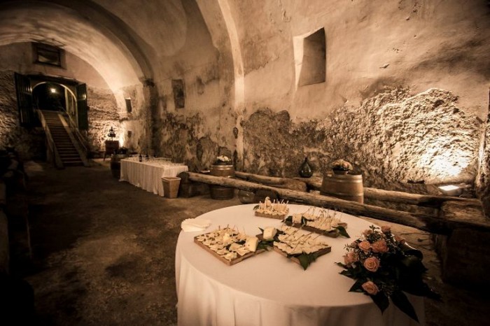 La bella cantina del Settecento non è usata per la vinificazione ma per eventi e banchetti.