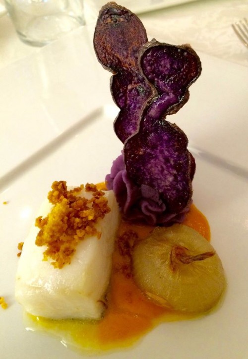 Gli antipasti proseguono con Il Baccalà con “Pipidigno” (peperone), ventricina Vastese e cipolla bianca di Fara; un piatto essenziale e gustoso, momento della tradizione abruzzese, non può che strappare applausi.