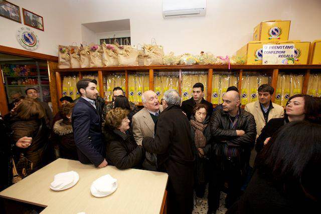 Luigi e Mario sono la sesta generazione di una famiglia di pastai che, nonostante le mode e l’avvento della hi-tech, sono riusciti a conservarsi autentici sottraendosi all’omologazione dei gusti che spesso impone la globalizzazione economica. Fondamentale si è rivelata sicuramente l’educazione familiare: i sacrifici e l’amore della mamma e di papà Raimondo, al fianco dei loro figli sabato per condividere l’importante momento. Intanto, nel clima di festa della serata inaugurale, sancita dalla benedizione dei locali e delle persone da parte del parroco don Graziano, si è intravista già la settima generazione di mastri pastai. Per l’occasione, Raimondo junior e Gerardo, i poco più che ventenni figli di Luigi, hanno ufficializzato il loro impegno nella continuazione dell’impresa di famiglia, a conferma della gestione esclusivamente familiare dell’opificio. Un modello da seguire per i tanti giovani spesso disorientati che, nella loro voglia di affrancarsi dai propri genitori, arrivano a rinnegare le proprie origini. Fondamentale nella maturità e nella sensibilità dei due ragazzi anche il ruolo svolto dalla mamma Stella, un vulcano dalle mille idee da cui occhi traspare entusiasmo, amore e dedizione per un marchio che da anni ha valicato i confini continentali e dietro al quale si nasconde una vita di sacrifici. Oltre agli esponenti della famiglia Vicidomini, nel laboratorio c’è anche Nello, pastaio, fratello di Stella.