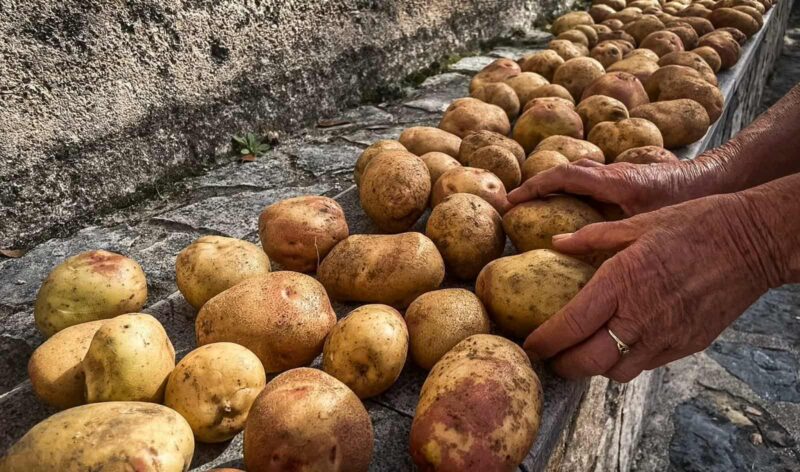 “Le patate si sono sempre coltivate in montagna a Castelcivita. Sono figlio di allevatori, e ricordo che la mia famiglia insieme alla pastorizia aveva già terreni destinati alla coltivazione. Le patate in parte si davano ai maiali, poi al gregge, e infine alla famiglia”, Paolo Vincenzo è un giovane coltivatore di patate che ha deciso di continuare una storia già incominciata tanti anni