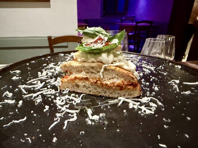 Pergola Style: Essenza: pomodoro pelato, stracciatella, parmigiano reggiano – La Pergola di Radicondoli