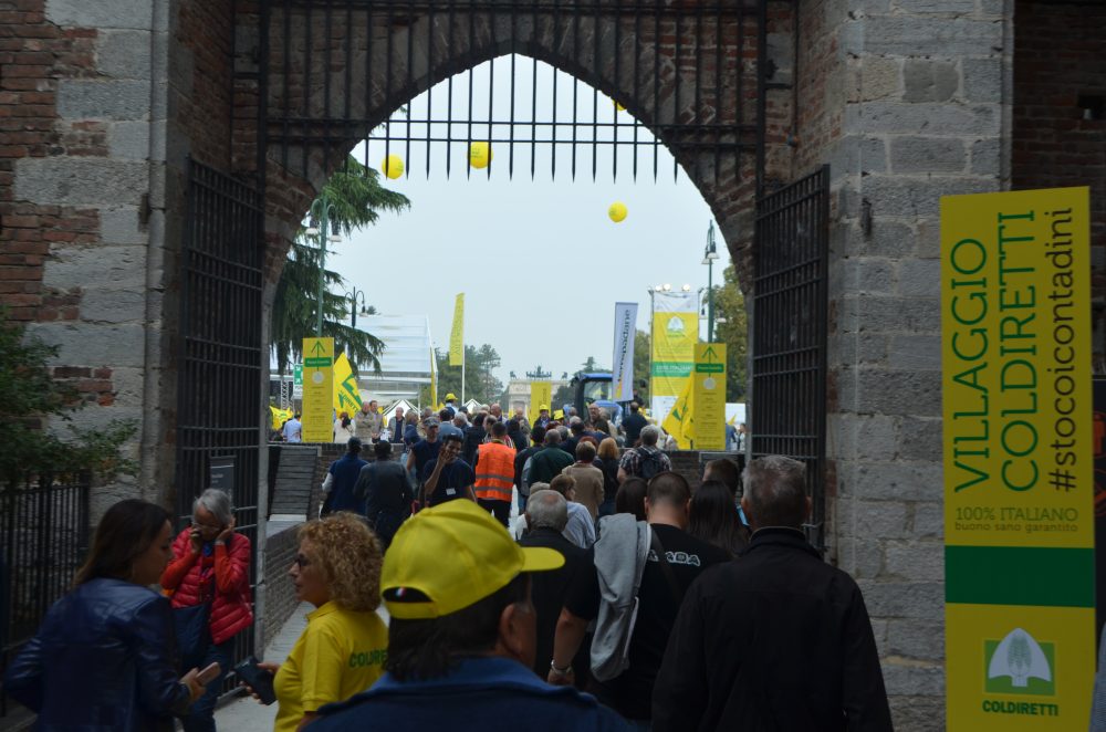 Le milizie che circondano il castello sono quelle di Coldiretti che, per tre giorni (fino a domenica 1 ottobre), portano la ‘grande bellezza’ delle campagne italiane nel cuore della metropoli lombarda, dove hanno realizzato la più grande fattoria in città.