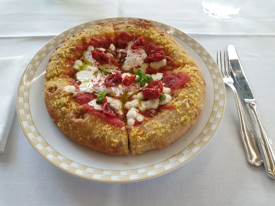 L’impasto: ben lievitato, anche se nella parte del cornicione risulta un “morso” che impegna troppo la masticazione (molto differente da quello di Bonci o di Renato Bosco ad esempio che, anche se croccanti all’esterno, sono scioglievoli all’interno). Al contrario, al centro l’impasto risulta troppo “inzuppato”, perdendo completamente la consistenza a causa dell’eccessivo condimento.