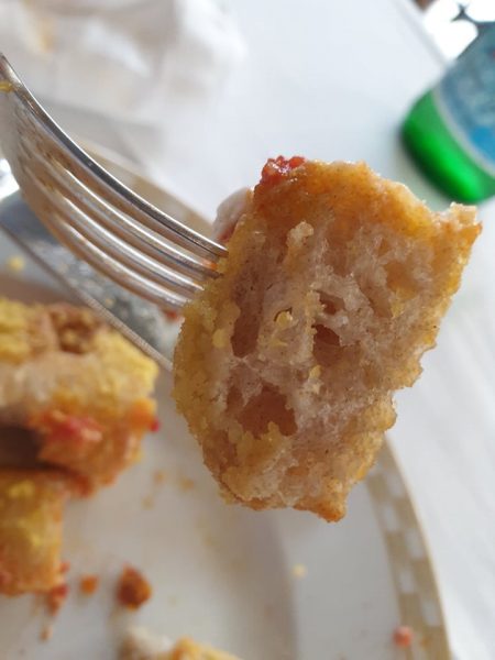 La cottura: corretta e uniforme la cottura, per un prodotto che probabilmente viene rigenarato prima di essere portato servito.