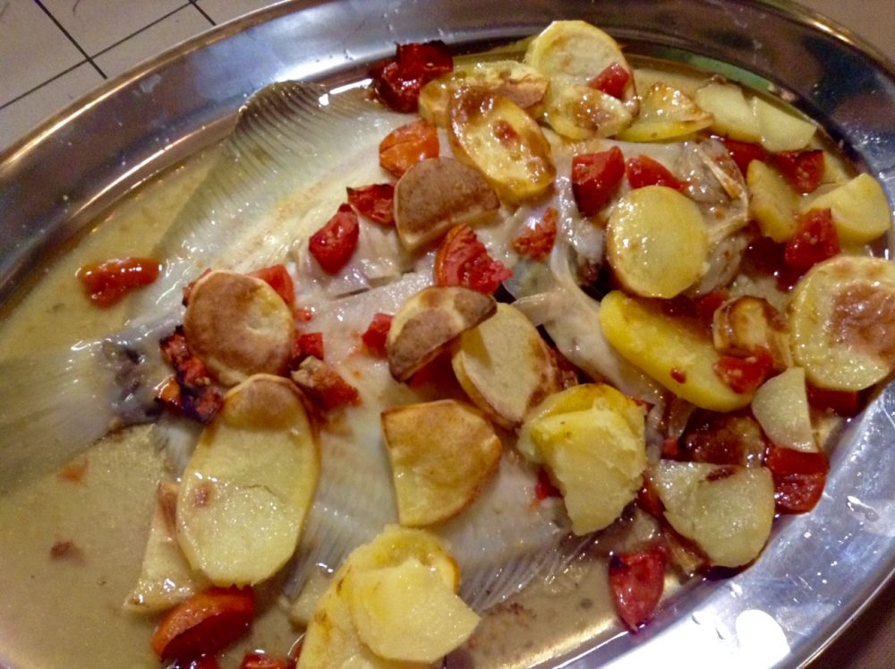 Dei Mille, Riccione, rombo al forno con patate e pendolini, quando la sabbia dell’Adriatico fa certi regali, bisogna approfittarne, qui ai Mille, portano il pesce intero per due persone che vogliono godere non solo dopo… come disse Totò alla Fallaci, “forse vi sono momenti minuscolini di felicità, e sono quelli durante i quali si dimenticano le cose brutte. La felicità, signorina mia, è fatta di attimi di dimenticanza”