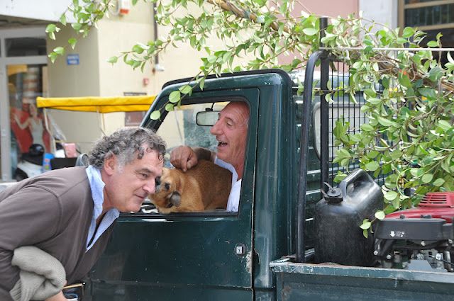 Casa mia, si parte, un saluto a recenti amici, un giardiniere di nome Massimo con la maschera di Cipputi uguale, il suo canino Marcello, un mito. Toh! Chi c'è!! Le Gardien du Phare, con il suo libro sui vini francesi, in ritardo di sei mesi sulla consegna. Lui preferisce ormai gli osti di Monopoli. E' la solita storia di asini e cavalli o chiacchiere e distintivo.