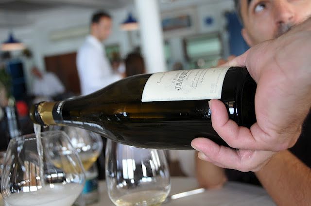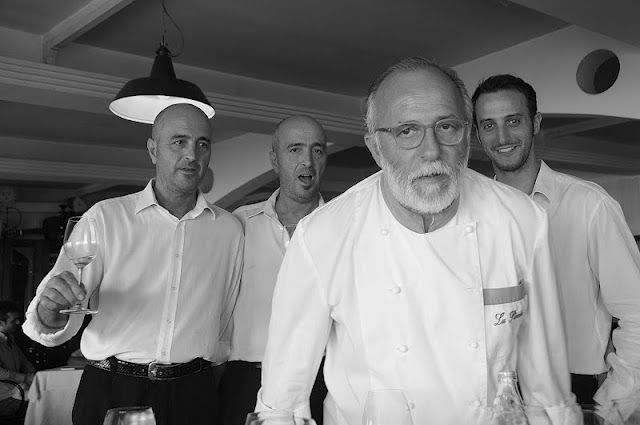 Certo, è spiaggiato nel posto giusto, poco lontano dai poeti di Castagneto e dai nobili di Bolgheri! Tocca il pesce con la stessa delicatezza con la quale saluta il gruppo cinese, il capo dei Vigili del Fuoco, l'Ambasciatrice di Slow Wine e la coppietta imboscata. C'è chi dice, solo raramente a ragione che si va al ristorante per quello, se non per – orrore – quanto si mangia e non per i modi dell'Oste, ma è l'uomo ( certo, anche la donna…) che fa il piatto. Nel caso di Luciano Zazzeri, ancora di più! “